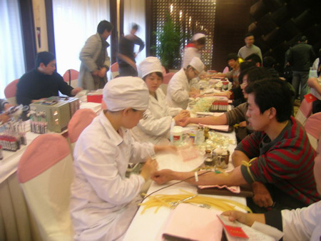 室外冷风嗖嗖,室内暖气融融,1月6日上午,由彭埠镇组织的无偿鲜血活动在华辰大酒店五楼会议厅举行。“无偿献血 免费用血 一人献血 全家享用”“向无偿献血者表示崇高的敬意”两条大红横幅悬挂在会议厅上方。在各社区的大力支持下,彭埠镇共组织400余人参加体检,完成献血300人,其中献400 CC以上有9人,献300CC 以上有23人,尤其是彭埠社区在李劲松书记的带领下,村委班子、村民组长都积极参加献血和体检活动,进一步促进了彭埠镇慈善事业的发展。