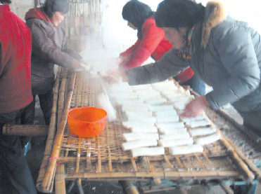 年糕因含有“年糕年糕年年高”的寓意,所以,临近春节,不少城乡居民都喜欢自己买米,送到年糕加工点加工。近日,记者在富春江镇俞赵村一家年糕加工点看到,前来打年糕的村民排起了长队。碾米、蒸粉、剪年糕、摊年糕……村民们忙得不亦乐乎。