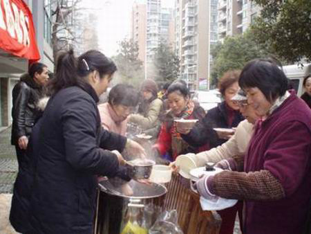 小小的一碗腊八粥,包含着社区浓浓的情谊。