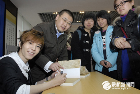 2月1日,人民书店总部1楼售展中心,100多位热情痴迷的读者排起长龙请郭敬明签名。当日,人民书店与“钱报读书会”举行首次全民阅读体验活动,特邀知名作家郭敬明与读者聊《小时代2.0》。