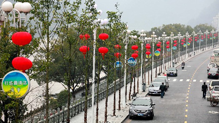 春节临近,连日来,工作人员正忙着装扮新安江城。据悉,新安江主要地段将悬挂2000多只红灯笼,喜迎新春佳节。