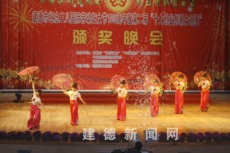 晚会上,表彰了2009年度在我市各行各业做出突出贡献的妇女,包括三八红旗集体代表、三八红旗手代表、“双学双比”女能手代表、“巾帼建功”标兵代表、五好村妇代会代表,以及第二届“十大创业创新女明星”等。晚会精彩不断,表现了我市妇女积极投身经济建设、新农村建设,建设和谐社会的风采。 |