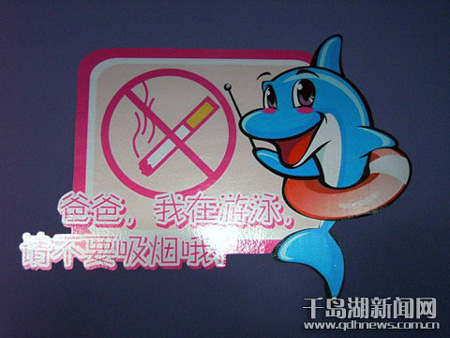 当天在婴儿游泳馆里记者还看到了可爱的禁烟标志,陪着宝宝的爸爸们也蛮自觉的都没有在馆内吸烟。 |