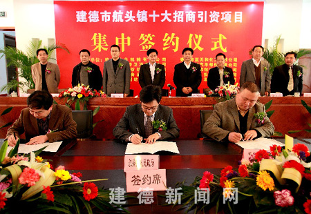陈春雷指出,航头镇的“葡萄串”效应是我市的一个典范,也是航头镇及我市投资环境逐步改善的一种体现。他要求航头镇及市级各相关职能部门,继续为投资者创造一个安心、称心、放心的投资环境,特别对签约的十个项目要用心服务、贴心服务、全心服务,以吸引更多的投资商到建德来投资。这样建德才有希望,我们才能追赶兄弟先进县市,才能缩短先进县市之间的差距。他同时希望签约的项目在航头真正开出携手合作之花,结出共同发展之果。