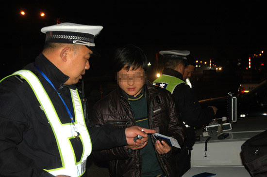 昨天是交通法新规施行首日。今晚,市交警大队在市区范围内突查酒后驾车中,城区中队的民警查获首名酒后驾驶者,司机被处扣12分。截至当晚20:00,市区共查获酒后驾车16例,涉嫌醉酒驾车1例。