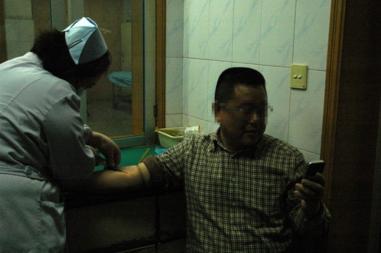 涉嫌醉酒驾车的叶某正在市人民医院接受抽血