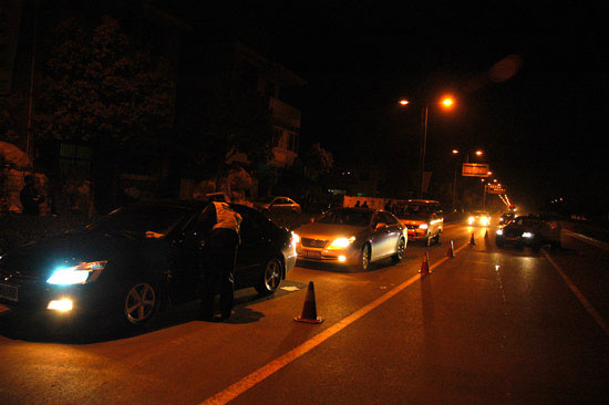 位于金桥北路的检查点,今晚查获多起酒后驾车