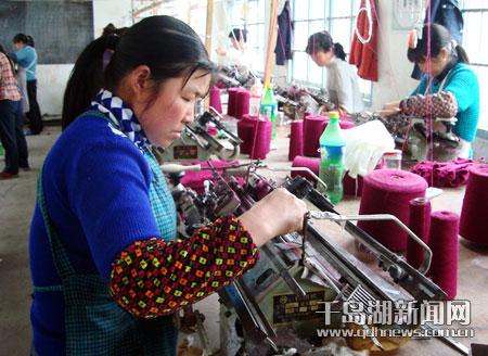 因为家里茶叶不多,往年的这个时候,新合村的洪莲娜原本在家闲着,不过今年她却一天也没得闲,天天都在村里的奥兰针织厂上班。尽管做针织一天的工资抵不上现在采名茶一天的收入,不过她依然乐滋滋的。“反正在家闲着也是闲着,来这里上班就有收入。对我们农村妇女来讲,这样的针织厂多办点好。”洪莲娜告诉记者,对针织一窍不通的她,2009年正月开始上班到年底,一共挣了7000多元的工资,给家里增加了一笔不小的收入。