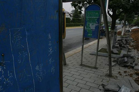 4月13日,笔者在县城白云源路与学圣路交界处的公交站点拍摄到这张照片。在这块涂划得乱七八糟的牌子上,最“经典”的是两个不同的人所写的两句话:“请不要乱涂和爱护公物。”两个月前,本报的民间拍客曾报道过此事,今天旧事重提,目的只有一个,那就是呼吁广大市民:仅有文明意识是不够的,言行一致才是真正的文明。