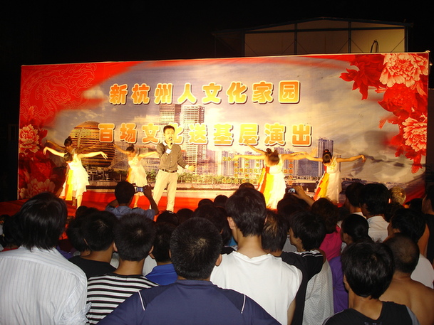 7月19日,杭州市总工会“新杭州人文化家园”百场文化送基层来我上城科技工业基地开展演出活动。工业基地组织企业外来务工人员600余人观看了整台演出晚会,演出进行了一个小时,参加演出人员冒着酷暑,给外来务工人员带来了精神文化生活。整台演出节目质量高,台上台下互动性强,不时响起阵阵掌声,受到了观众的一致好评。