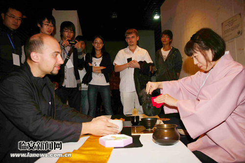 23日、24日,2010杭州国际茶席展在浙江农林大学举行,来自中国各地以及意大利、韩国、日本、印尼等国家的36组茶席,充分展现了各自不同的文化特征,吸引了来自世界各地的1000多名爱茶之人的观摩和学习。 通讯员 陈胜伟 摄