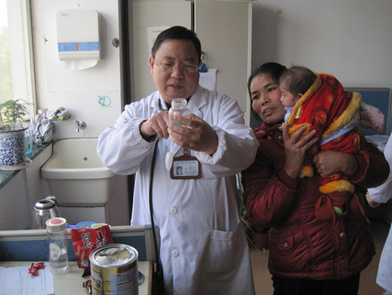 谢主任在教雷女士配奶粉