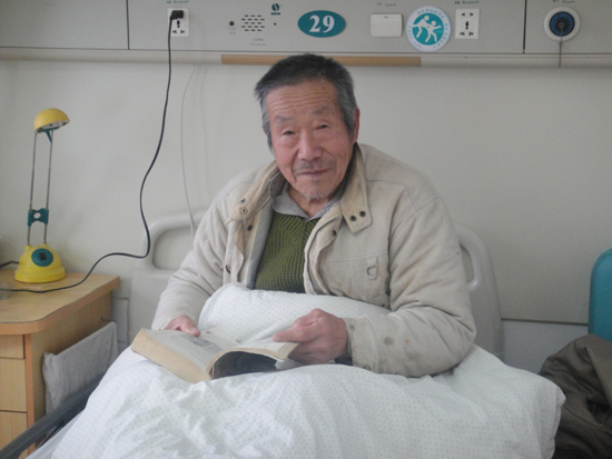 吕老伯在病床上等候治疗