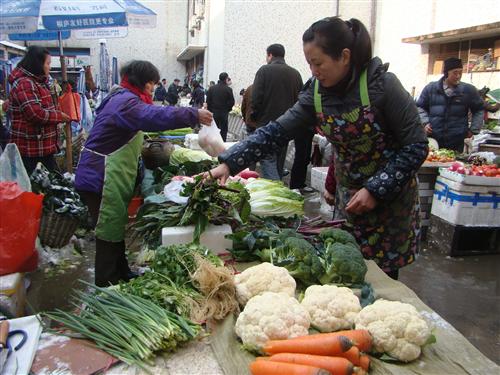 “今天早上进货的价格提高了0.2~0.3元/斤,但是卖给市民的价格一分都没涨。”市场内一蔬菜摊位老板娘说,从昨天上午销售情况看,买菜的市民相对以往少了一天,“前天下午买菜的市民较多,尤其是大白菜和青菜的销售量增加了不少。”老板娘说,可能是市民认为下雪过后菜价会上涨,在家多备一些蔬菜。