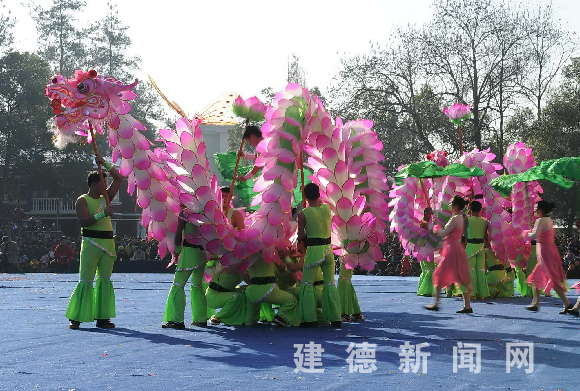 紧接着,一条条彩龙纷纷闪亮登场。寿昌的五龙献瑞、更楼街道的小精灵舞龙、婺剧团和严州府的荷花龙、新安江职业学校的龙凤呈祥……游弋、起伏、翻腾、穿越,一条条彩龙气势雄壮、栩栩如生、撼人心魄。在音乐声中,在多变的构图和动作转换中,传达出神龙的无穷意趣、雄浑气势和神韵风采,精彩的舞龙表演赢得了现场观众的阵阵掌声和欢呼。紫气东来龙献瑞,国泰民安龙竞舞。群龙竞舞新安江,舞出了盛世祥和的大气派,更舞出了我市建设秀美、繁荣、和谐新建德的宏伟愿景。 |