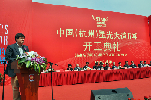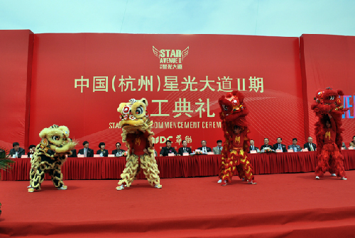 3月27日,在星光大道Ⅱ期项目现场,“let’s star唯你闪耀——中国(杭州)星光大道Ⅱ期开工典礼”隆重举行。全国政协常委、中国文联党组副书记、副主席覃志刚,浙江省委常委、宣传部部长茅临生,省人大副主任冯明,国家图书馆馆长、全国政协委员周和平,国务院派出国有重点大型企业监事会主席、全国政协委员牛越生,杭州市政协主席孙忠焕,杭州市委副书记叶明,中国电影家协会分党组书记、常务副主席康健民,文化部机关党委常务副书记张雅芳,杭州市副市长陈小平,浙江省委宣传部常务副部长胡坚,中影集团党委书记、副董事长焦宏奋,区党委书记、管委会主任、区长张耕,区人大常委会主任周瑞烈,区党工委委员、区委常委、管委会副主任、副区长孙剑甫,管委会副主任、副区长俞小安等出席了本次典礼。