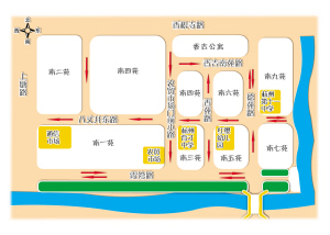 即,对八丈井东路(德苑路至上塘路)实行东向西单向通行;香苑路以八丈井路为中心,南面实行北向南单向通行,北面实行南向北单向通行;德苑路(霞湾路至八丈井东路)实行南向北单向通行;香吉公寓南小路实行西向东单行;农贸市场门前小路实行北向南单向通行,南二苑东面小路实行北向南单行。