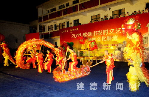 文化如阳光,照亮灵魂;文化如甘泉,滋养心田。11月12日晚,2011年建德市农村文艺调演暨龙舞文化展演在杨村桥镇举行。全市各乡镇(街道)极富地方特色和文化底蕴的文艺节目璀璨亮相,欢乐绚烂了杨村桥的夜空。市四套班子领导汪华瑛、严凌云、郑冰、朱启鸿观看了演出。