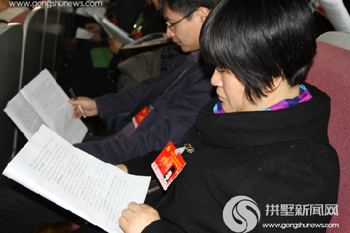 与会的党代表正在认真阅读会议材料。