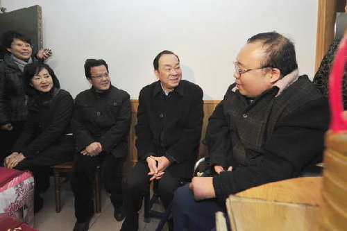 1月10日上午,省委常委、市委书记黄坤明,市委常委、市委秘书长许勤华在西湖区委书记王立华,区委副书记、代区长朱党其,区领导沈阳红的陪同下来到灵隐街道曙光新村,看望慰问了低保残疾人陈隽一家,并预祝他们新春愉快、身体健康、幸福如意。