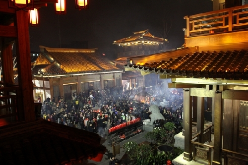 香积寺的除夕夜烧头香活动到午夜时达到了高潮,数千人前往祈福,活动一直延续到凌晨2点。 |