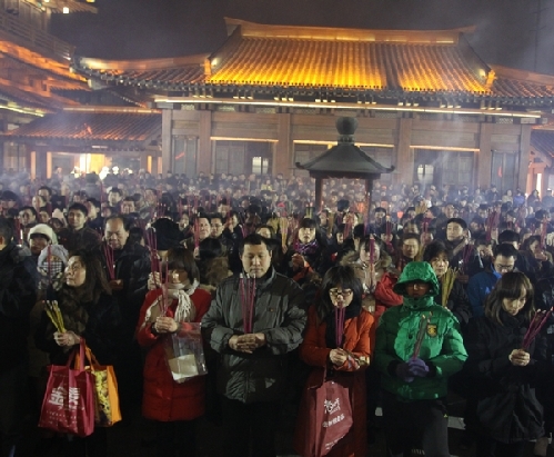 2012年1月22日除夕夜,如潮的人流涌进香积寺,市民们许下美好的愿望,祈求来年好运。