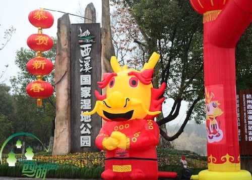 今年新春活动,西溪安排了新春送福、新春大拜年、民俗表演、儿童趣味游戏等活动,游客参与度高,奖品丰富,单是新年送福抽奖活动,便有超过2万人赢取了琉璃挂件、限量龙宝宝玩偶等精美纪念品。在民俗表演方面,西溪除原有越剧、十八般武艺等传统节目之外,特意安排了有西溪特色的水乡婚俗实景演绎、皮影戏、魔术等表演,每天超过20场的演出,让游客大饱了眼福。尤其是西溪水乡婚俗实景演绎,从春节第一天起,便备受瞩目——扭着腰肢的媒婆,在花轿里娇羞不已的新娘,还有早已等候在码头前面、迫不及待的新郎……独特的水乡风情吸引着无数游客拿出相机,记载下这极富西溪特色的一幕。