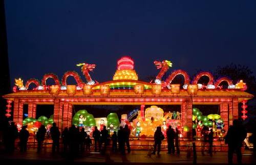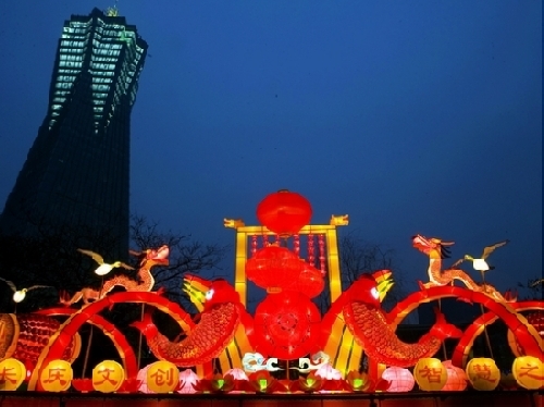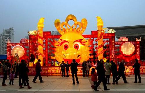 龙年元宵,自然龙型彩灯多。广场东西两侧民俗彩灯展示长廊,最长近30米、最高约10米,8组大型组灯“群龙聚首”,大摆龙门阵,“龙腾祥瑞”组灯气势宏大;“双龙戏珠”组灯栩栩如生;“鲤鱼跃龙门”灯组吉祥讨彩;卡通龙头造型生动可爱,最受小朋友欢迎;“龙凤呈祥”中西合璧,描绘出“文化强区、经济腾飞”的美好愿景,将西湖文化广场装扮得美轮美奂。低碳科学知识宣传长廊,成了此次灯会的又一看点,百余块以“倡导低碳生活,打造低碳下城”为主题的画板,让不少市民驻足,学点低碳生活小常识。