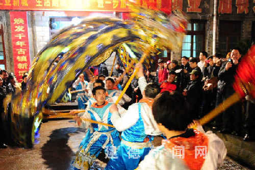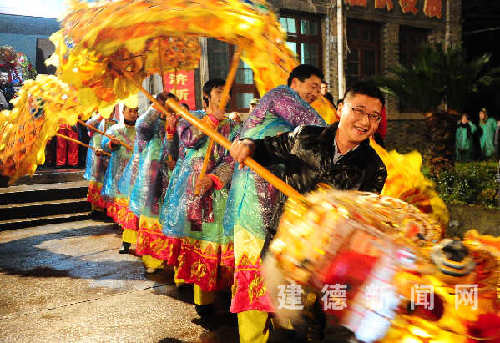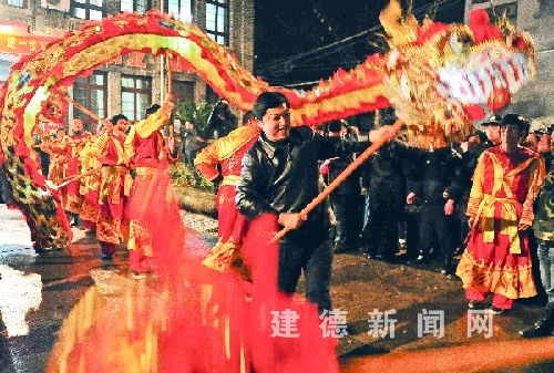 正月十五元宵之夜,古镇寿昌沉浸在一片喜庆欢乐海洋里。五条“长龙”环绕集镇,激情狂舞,把龙年的吉祥如意送给了家家户户。董悦、陈震山、徐志生、程茂红、沈翔、汪华瑛、吕平、郑学龙、沈波、周友红、饶秋林等建德市四套班子领导也参与其间,与民同乐。