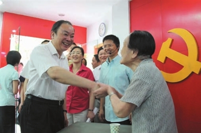▲浙江省委常委、杭州市委书记黄坤明在南星街道调研指导创先争优工作