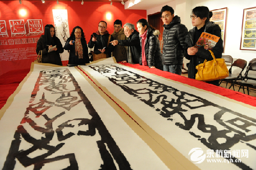 此次篆刻展是第四届中国杭州超山梅花节的精彩亮点之一,师村妙石先生以其独特的艺术天才演绎了一幅幅瑰丽动人的梅花新天地,他汲取中国5000年文化的精髓,将良渚文化、殷商甲骨文、秦汉玺印等文化元素巧妙地融合创新,用现代艺术语言表现出来,色彩绚丽、摄人心魄,开创出一个突破方寸、朱白、平面的篆刻新境界。“中国文化是日本文化的源头,我们发挥艺术想象力后加以创新。”师村妙石写下“源流”、“创新”四个汉字,他说,日本文字其实就是从中国汉字演化而来的。