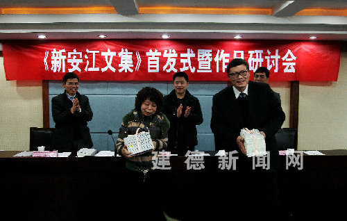 2月23日,建德市第二套由建德本土作家创作的文学丛书《新安江文集》举行首发式暨作品研讨会。建德市文联向市图书馆和档案馆赠送了新出版的文集,文学界的人士们畅所欲言,表达了对《新安江文集》首发的欢欣鼓舞之情。建德副市长祝军出席了首发式。