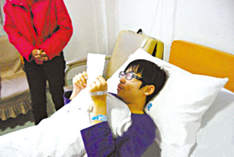 病床上的徐高仍不忘看书,更不忘让记者转告他的无限谢意。他说,好心人的每一分捐款,都是为他增添一份生的希望。等将来有了回报社会的能力,一定要也像这些爱心人士一样,做一个帮忙别人的有用的人。