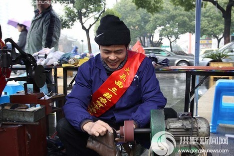 “日日下雨天气潮,现场却是很热闹;群众排队磨剪刀,雷锋粉丝真不少。”这是在拱墅区信义坊东广场上,路过的市民钱大伯写的一首打油诗,记录的是市民排队纷纷等待冯正兴师傅为他们磨剪刀、戕菜刀的情景。从昨天一大早冯正兴来到信义坊东广场时起,一直为群众义务服务了近五个小时,连午饭都顾不上,磨剪刀、戕菜刀百余把。