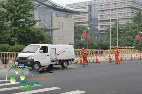 5月1日凌晨4时30分,笔者就早早的来到了黄龙路黄龙体育中心东门口,不远处快车道上洒水车奏着欢快的音乐,两条水龙上下翻滚,机扫车紧随其后,在它们的身后一条干净、明亮的道路展现在人们的面前。随后,笔者又来到了省府路人民大会堂北门处,五六个穿着橙色工作服的身影在缓缓向前移动,扫帚和簸箕与地面的摩擦声,在依然宁静而显得空旷的马路上尤为清晰。