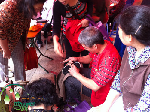 活动现场最忙的要数张小泉的老师傅了,随着社会的发展,磨剪刀的店铺已经越来越少,很多老居民都非常需要这个服务,特别是百年老店张小泉里的老师傅的手艺,那真是精湛,磨得又快又好。老师傅前面排起了常常的队伍,居民络绎不绝。还有我们铁佛寺社区提供的修鞋子服务,也有好多人前来,楼师傅从早上9点开始,一直修补到11点多,中间还不小心戳破了手指,真的很辛苦。但是看着居民们满意的离去,嘴里不断陈赞:“师傅手艺好啊,这样的活动要经常举办….”我们的雷锋志愿者们都欣慰的笑了。