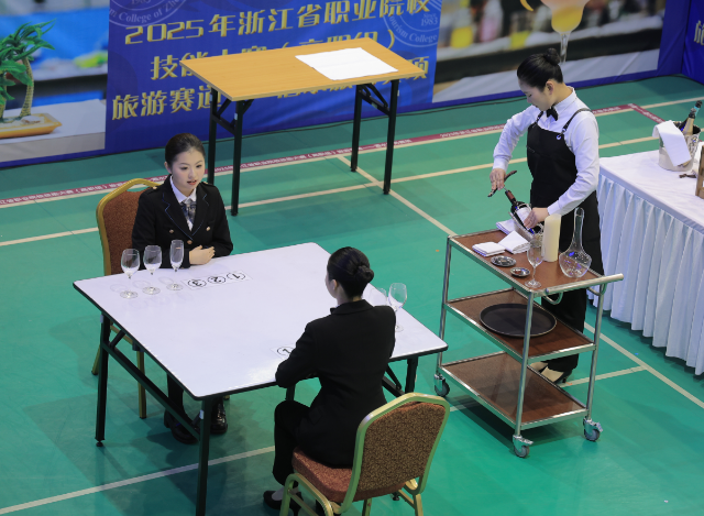 3月25日,由浙江省教育厅主办的2025年浙江省职业院校技能大赛高职组“酒水服务”赛项在浙江旅游职业学院拉开帷幕,省内16所高职院校29支队伍参与。
